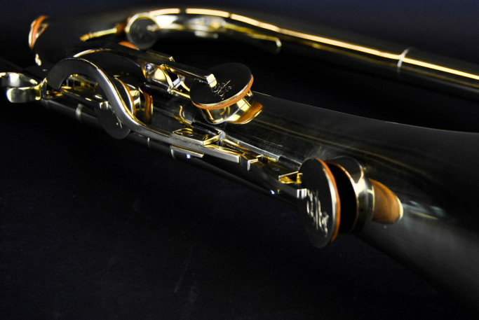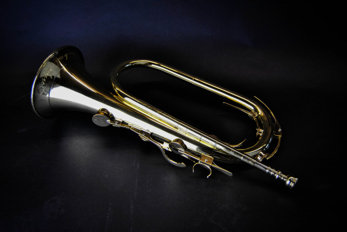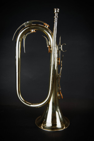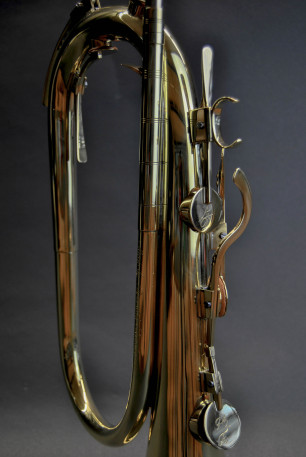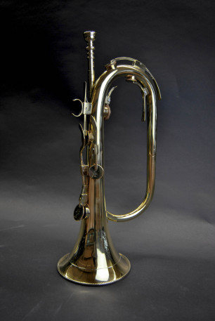 Nachbau eines Klappenhorns von Michael Saurle, München um 1820, aus der Musiksammlung der Tiroler Landesmuseen. Gefertigt unter Anwendung historischer Bautechniken. Handgehämmerter Becher. Handgeschmiedete Klappen.