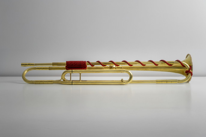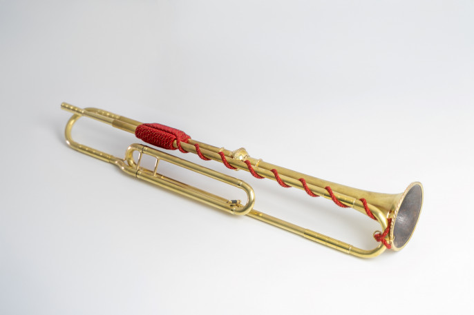 Tromba da tirarsi. Das Zugelement wird anstelle des Lochrohres eingesetzt und ermöglicht eine chromatische Scala ab D1 aufwärts.
